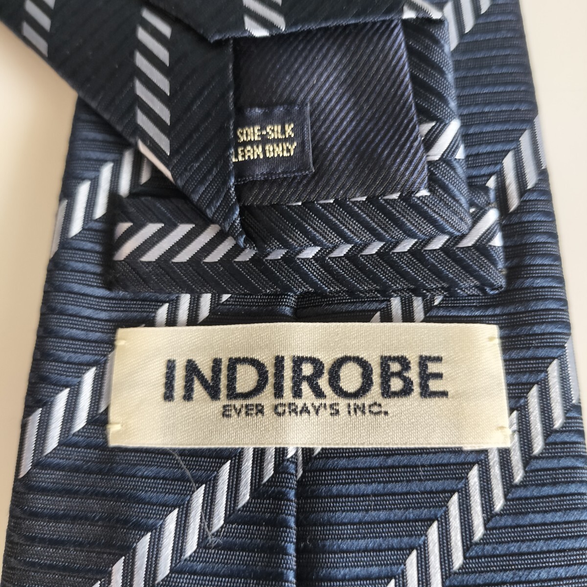 - INDIROBE(インディローブ)紺色水色ストライプネクタイ