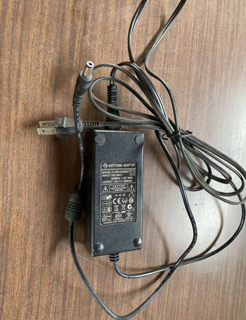 - 【送料無料】ACアダプタ 12V AC/DC Model: FJ-SW1203000T12VDC 3000mA 3A Switching Power Supply Cord 作動確認済み