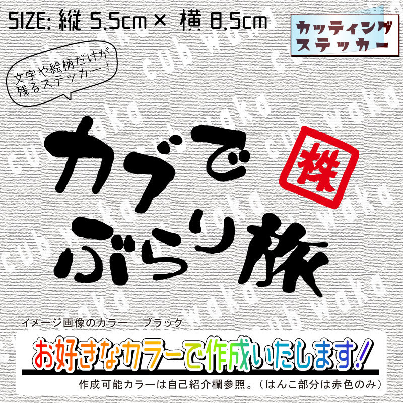 - カブでぶらり旅-横書ステッカー 文字絵柄だけ残るカッティングステッカー・CUB・カブ・リトル・ハンター・クロス・プレス・リアボックス