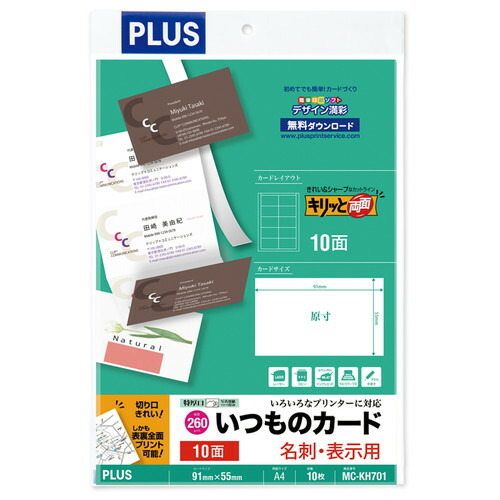 - (まとめ買い)プラス 名刺用紙 いつものカード キリッと両面 名刺・表示用 A4 特厚口 10面 10枚入MC-KH701〔×3〕