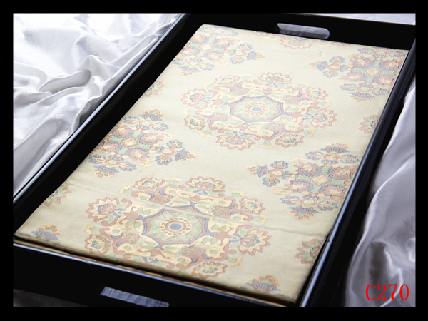 - C270厳選西陣 手織 しなやかに気品の風格 宝相華文極上逸品ベージュ地 六通高級正絹美術袋帯 検簪名古屋帯締め