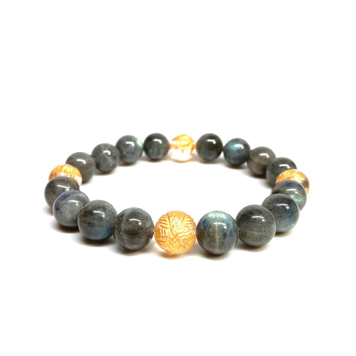 - 10mm 四神獣金彫水晶×ラブラドライト パワーストーン ブレスレット天然石 運気上昇 開運 金運 恋愛運 お守り 青龍 白虎 玄武 朱雀