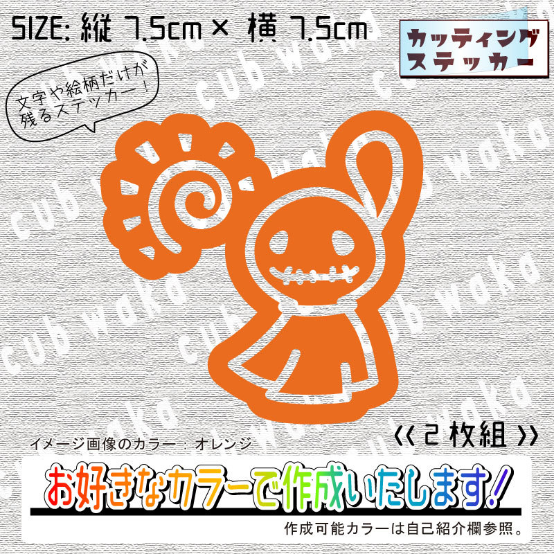 > てるてる坊主②-2ステッカー2枚組 文字絵柄だけ残るカッティングステッカー・カブ・車・バイク・二輪・トラック・リアガラス
