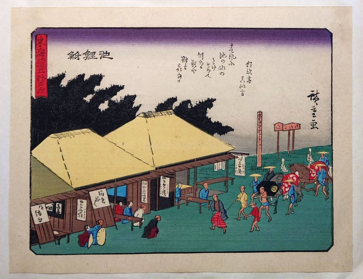 - f24080040〇彩色木版画 佐野喜版 狂歌入東海道五十三次 池鯉鮒宿 広重 複刻昭和年代〇和本古書古文書