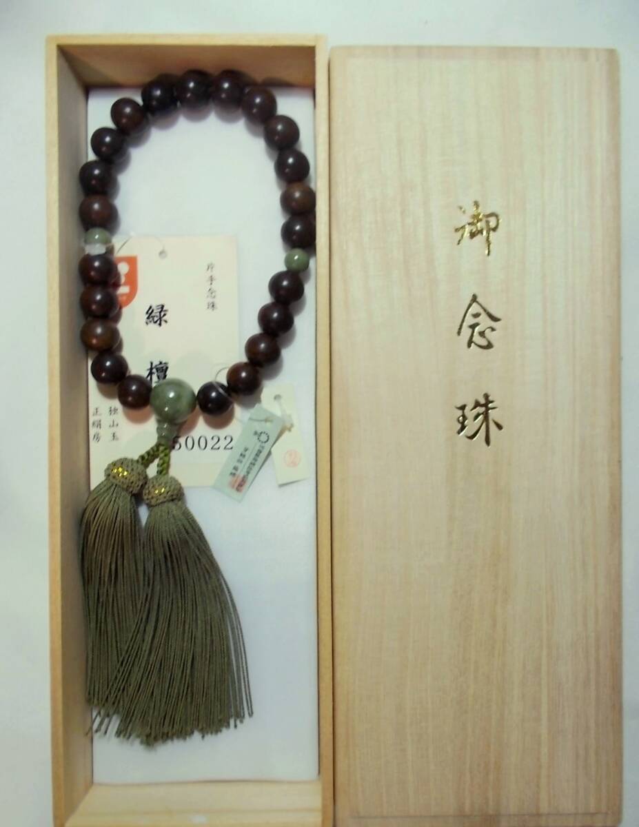 - 数珠/念珠①★緑檀/独山玉/正絹房/桐箱入り★京都数珠製造卸協同組合★片手念珠★