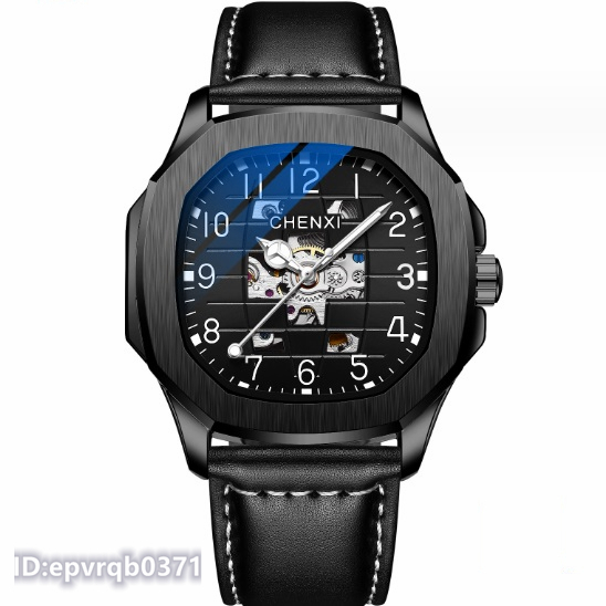 - 高級腕時計 機械式自動巻 メンズ ウォッチ スケルトンデザイン 本革ベルト 夜光表示 防水3ATM 数字盤 紳士 通勤 新品 2色選ぶ/黒