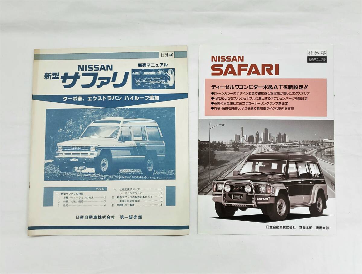 > 2冊 日産 サファリ 社外秘 販売マニュアル 4WD SD33 Y60 Safari ターボ車 エクストラバン ハイルーフ「カタログ アクセサリー オプション」