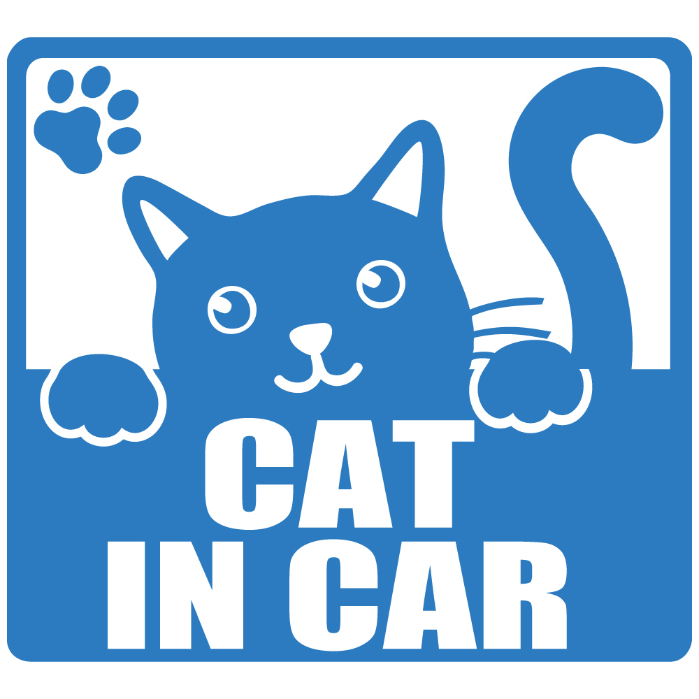 - ステッカー[CAT in CAR]【水色】15cm x15cm 猫 ネコ ねこ カーステッカー カッティングステッカー 防水 耐水 車に猫が乗ってます