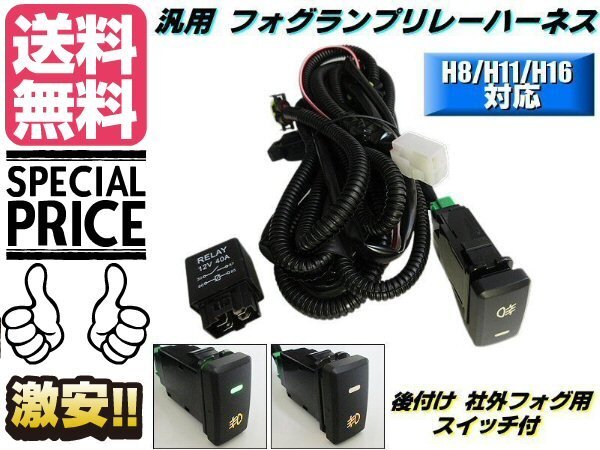 > トヨタ 汎用 緑LED スイッチ付 H8 H11 H16 後付 フォグランプ リレー ハーネス 配線 39×20mm 送料無料/6