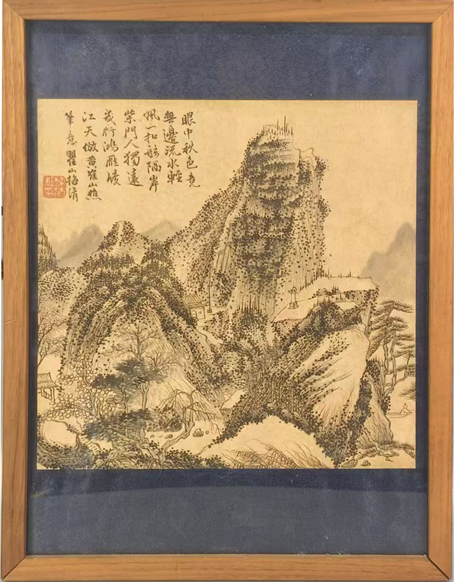 - 中国書画 掛屏 清時代 梅清書「両岸秋色図」紙本掛屏 書道巻物 真筆逸品 肉筆保証 唐物 時代物 古美術 LOT-8904