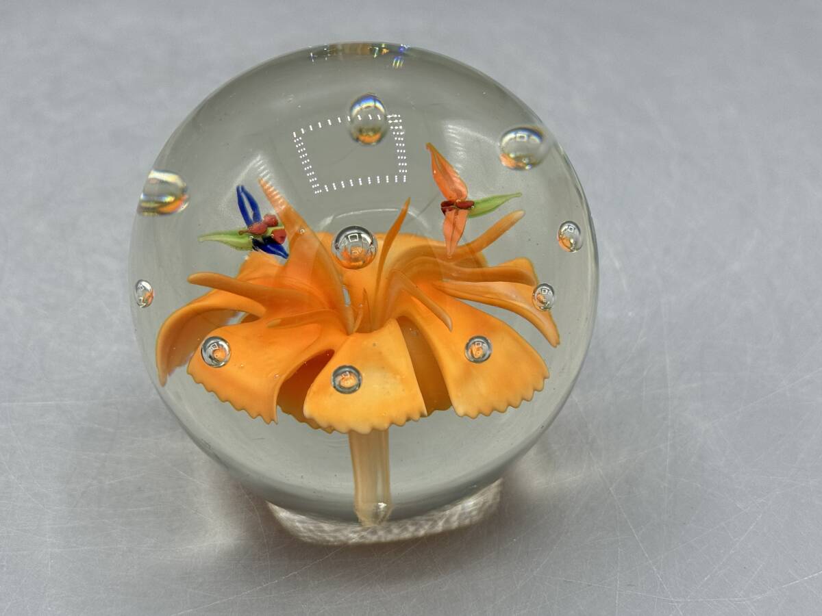 - 英国 フラワー ビンテージ オレンジ 花 ペーパーウェイト 文鎮 置物 蝶 ?