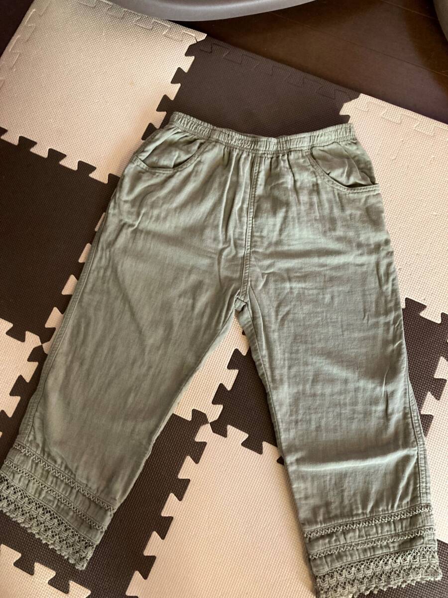- *即決 送料無料【カーキ】ガウチョ ハーフ パンツ 裾レース 半端丈 ポケット Mサイズゴム*