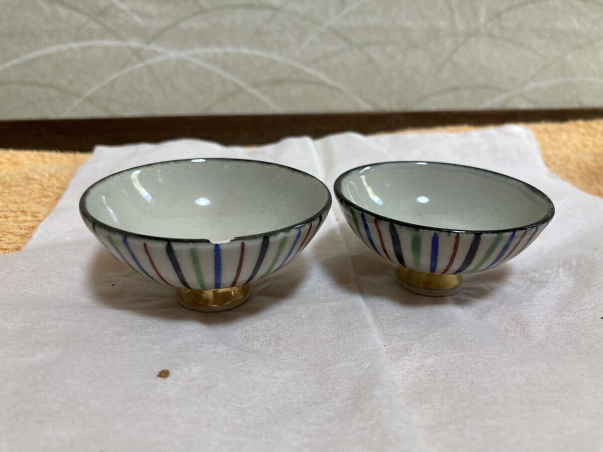 > アンティーク?骨董品?京焼?清水焼?ぐい呑み?酒器 ?食器 ?和食器?2点セット?カケ、汚れありです。