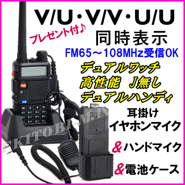 > 電池ケース&ハンドマイク&耳掛けイヤホンマイクセット/同時表示&デュアルワッチ♪J無し デュアルハンディ / 防水ケース付 無線機 新品