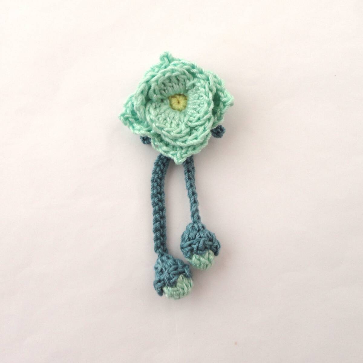 - ツボミが揺れる♪バラのブローチ*ミント*レース編み*ハンドメイド*b635