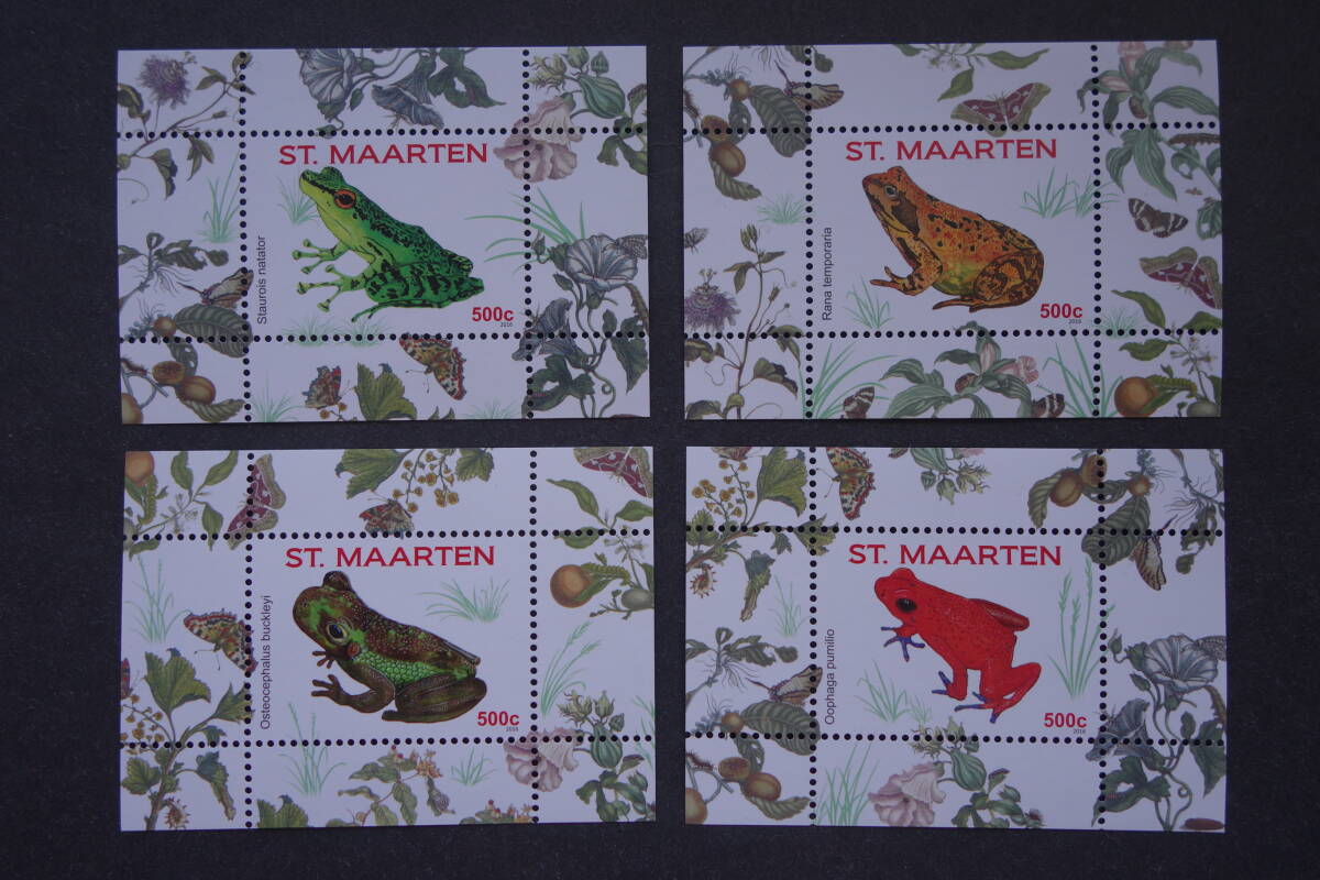 - 外国切手:シント・マールテン切手 「カエル(1次)」(ナガレガエル ほか) 小型シート 4種 未使用