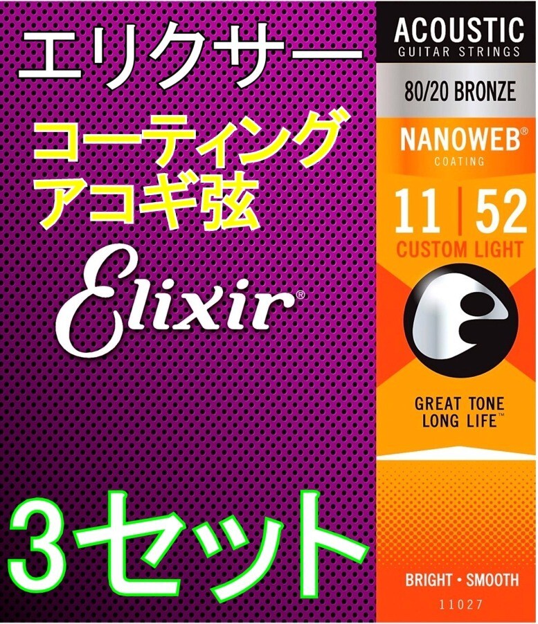 - Elixir NANOWEB 11027 x3セット Custom Light 11-52 80/20 Bronze 送料無料!ポストに投函・アコギ コーティング弦 エリクサー