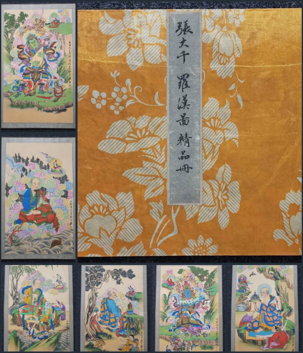 - 古美術 冊頁 中国・近現代 「張大千書」 絹本 【羅漢図画冊 六開】 書道 真筆逸品 肉筆保証 唐物 古画 LT-2408189