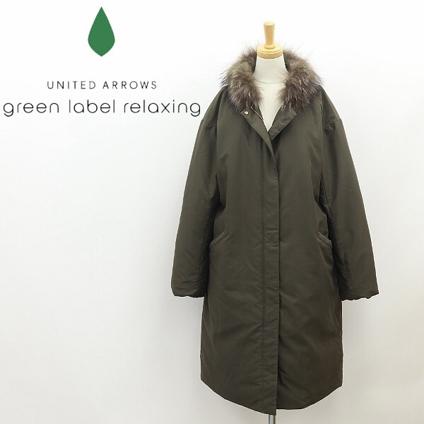 - 美品◆green label relaxing ユナイテッドアローズ グリーンレーベルリラクシング FM 2WAY ファー ノーステッチ ダウン コート オリーブ 38