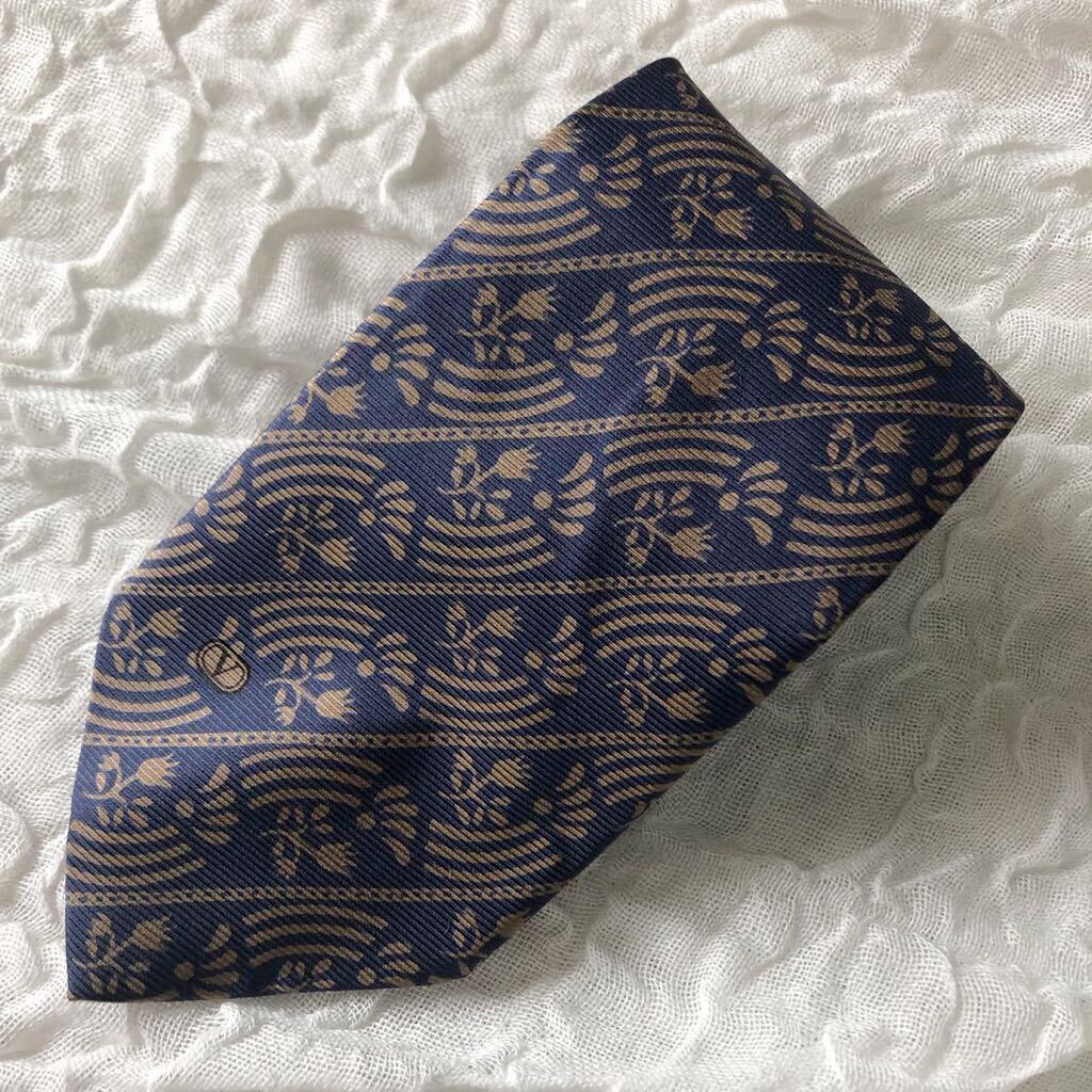- VALENTINO ヴァレンチノ ネクタイ ブランドロゴ シルク100% ブルー系 大剣幅9.5 イタリア製 ★1000