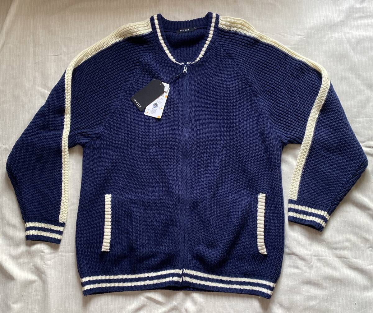 - ニットジャケット Lサイズ CHIP CLIP 紺系色 ストレッチ 袖ラインニットジャケット□□未使用品