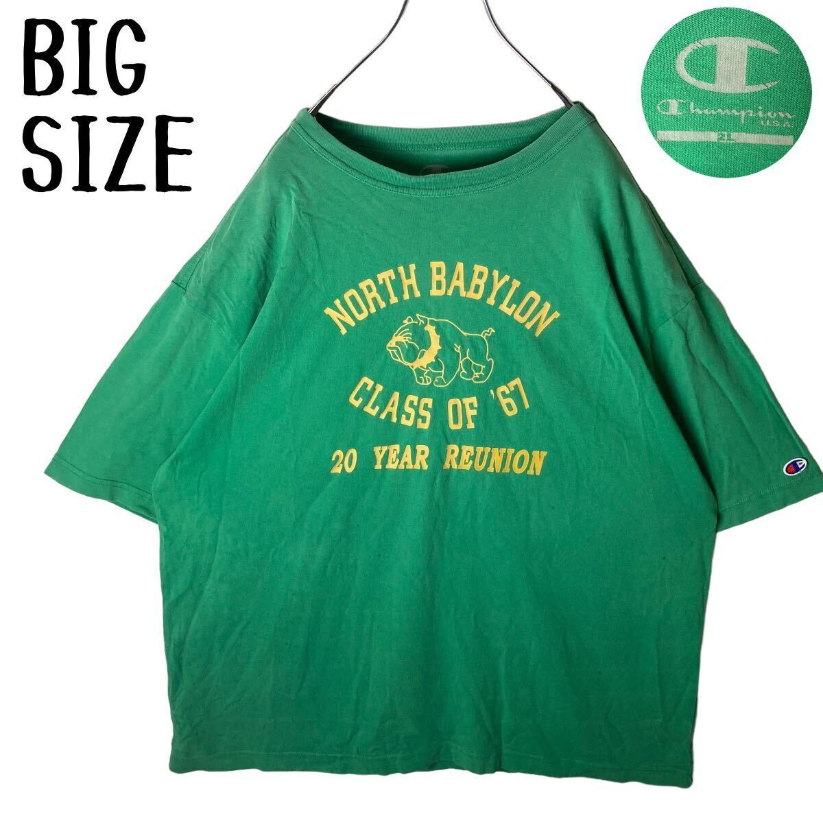 - Championチャンピオン ブルドッグプリント グリーンTシャツ ビッグサイズ