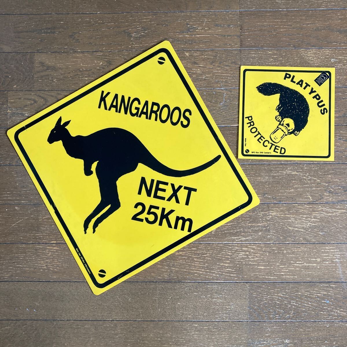 - オーストラリア土産の道路標識風・プラスチックプレート/2枚 【① カンガルー(37 X 37cm)/ ② カモノハシ(18.4 X 18.2cm)】