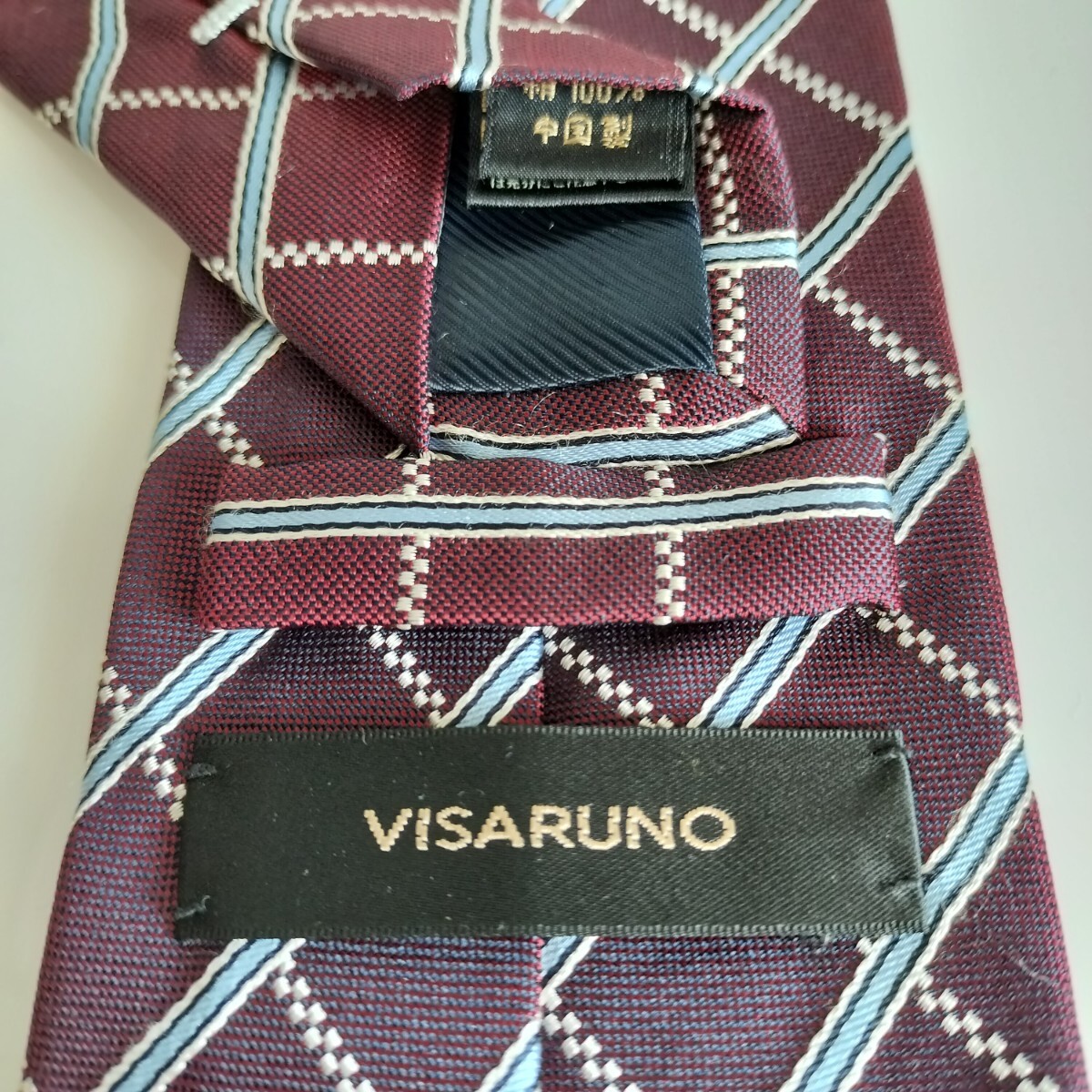 - ビサルノ(VISARUNO)ボルドー水色チェックネクタイ