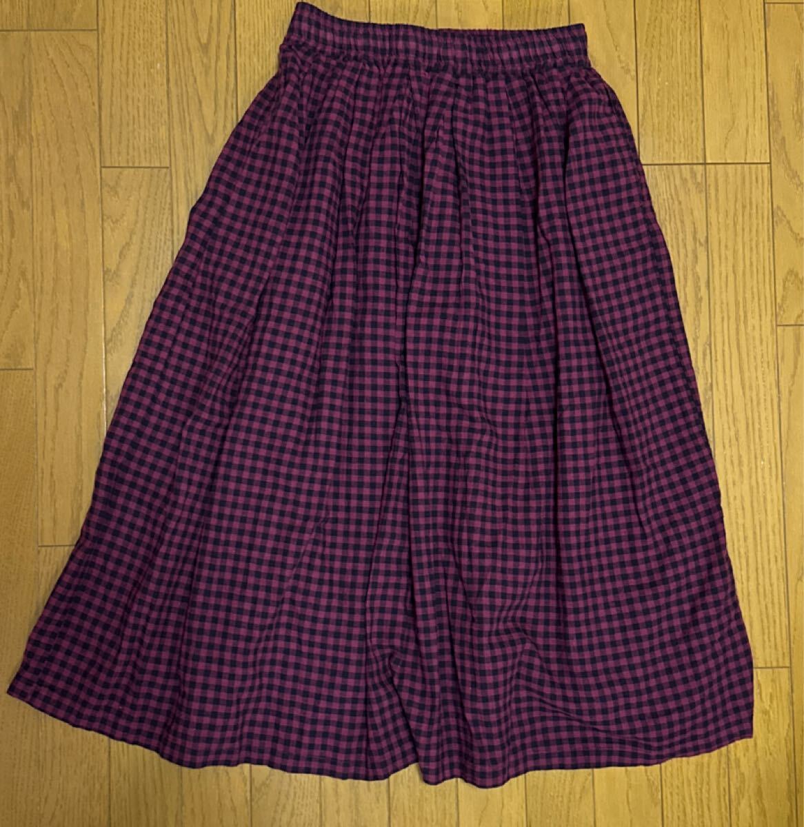 - 送料無料■SamansaMos2 サマンサモスモス ギンガムチェック ウエストゴム ギャザー ロングスカート コットンリネンブレンド サイズF
