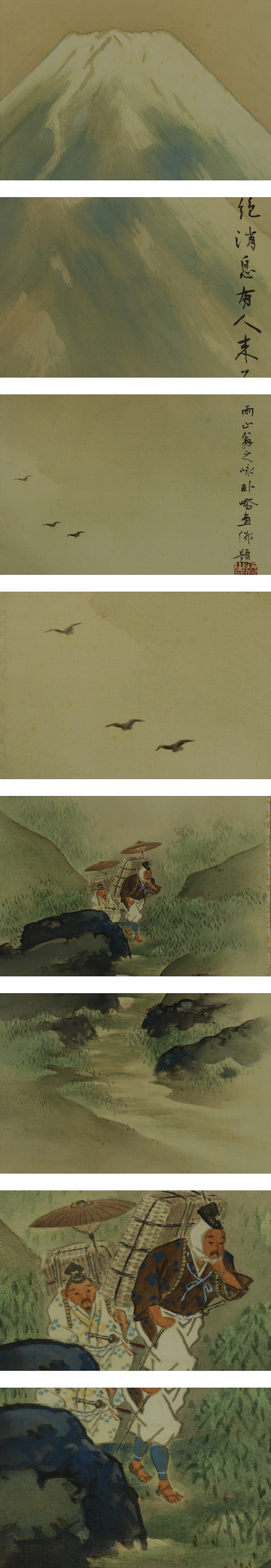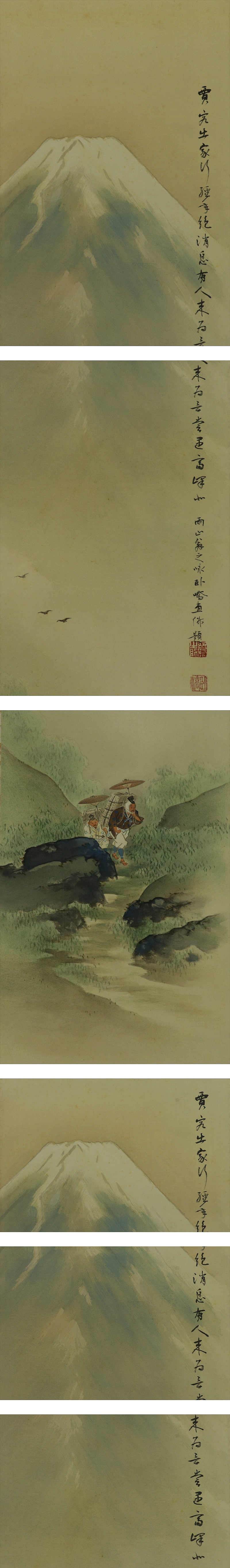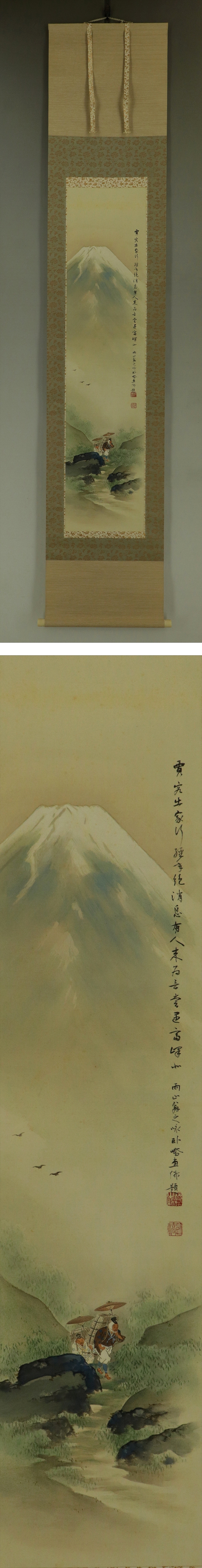 - 希少【模写】夜久臥橋【富士旅人図】◆絹本◆共箱◆掛軸 s07043a