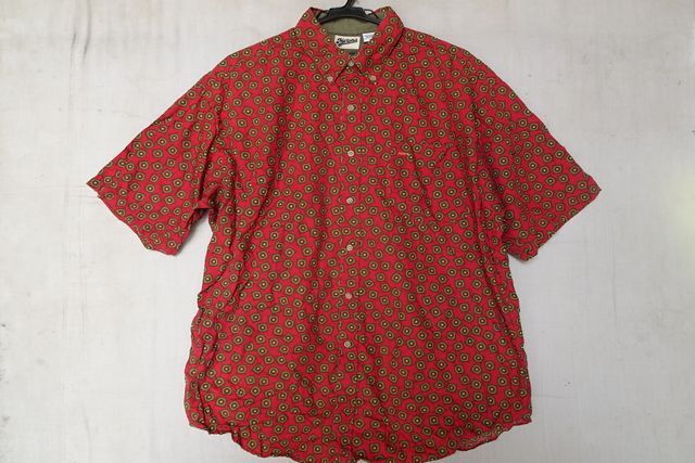 - Merona/メローナ/半袖ボタンダウンシャツ/細かいエスニック風総柄/左胸ポケット/赤/レッド/ベイクドカラー/Lサイズ(8/27R)