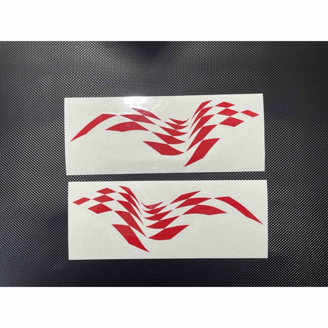- チェッカーフラッグ ステッカー 防水 転写シール 左右セット 赤色 20cm D