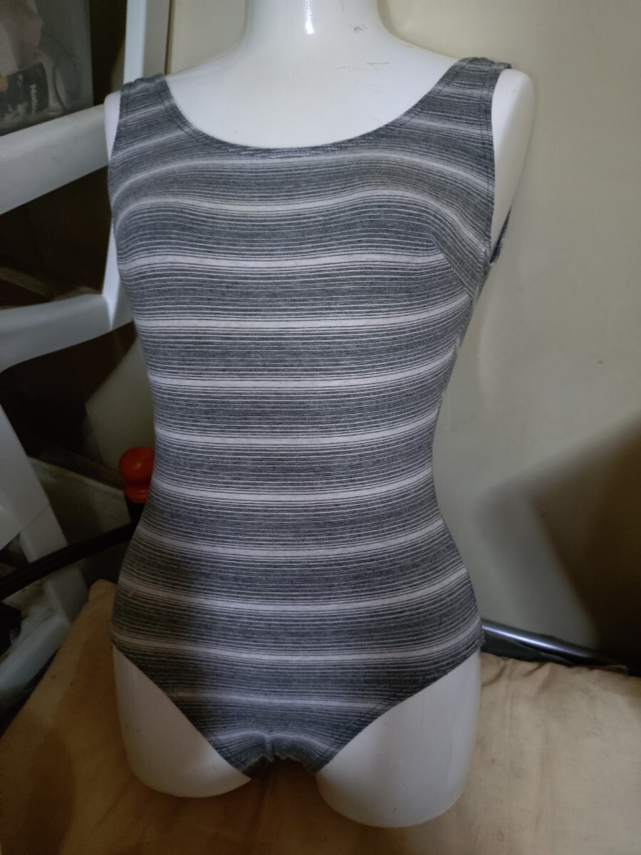 - M2847◆nanno◆セレブなグレー系ストライプ柄ワンピース水着◆9M