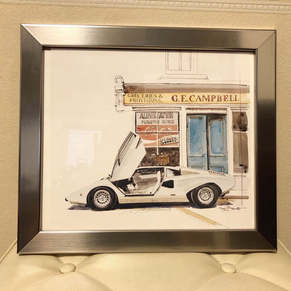 - 【送料無料】木製フォトフレーム 額縁 中古④(旧車 ランボルギーニ額装品 )