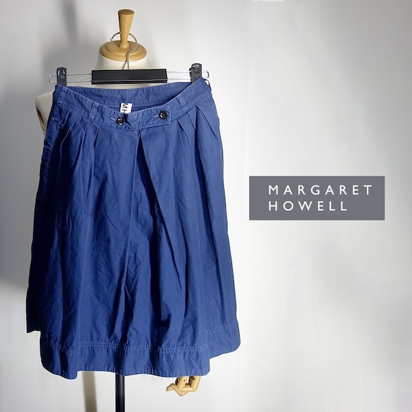- TK 定価 24150円 マーガレットハウエル MHL. コットンリネン ポプリン 複数タック スカート 紺 ネイビー