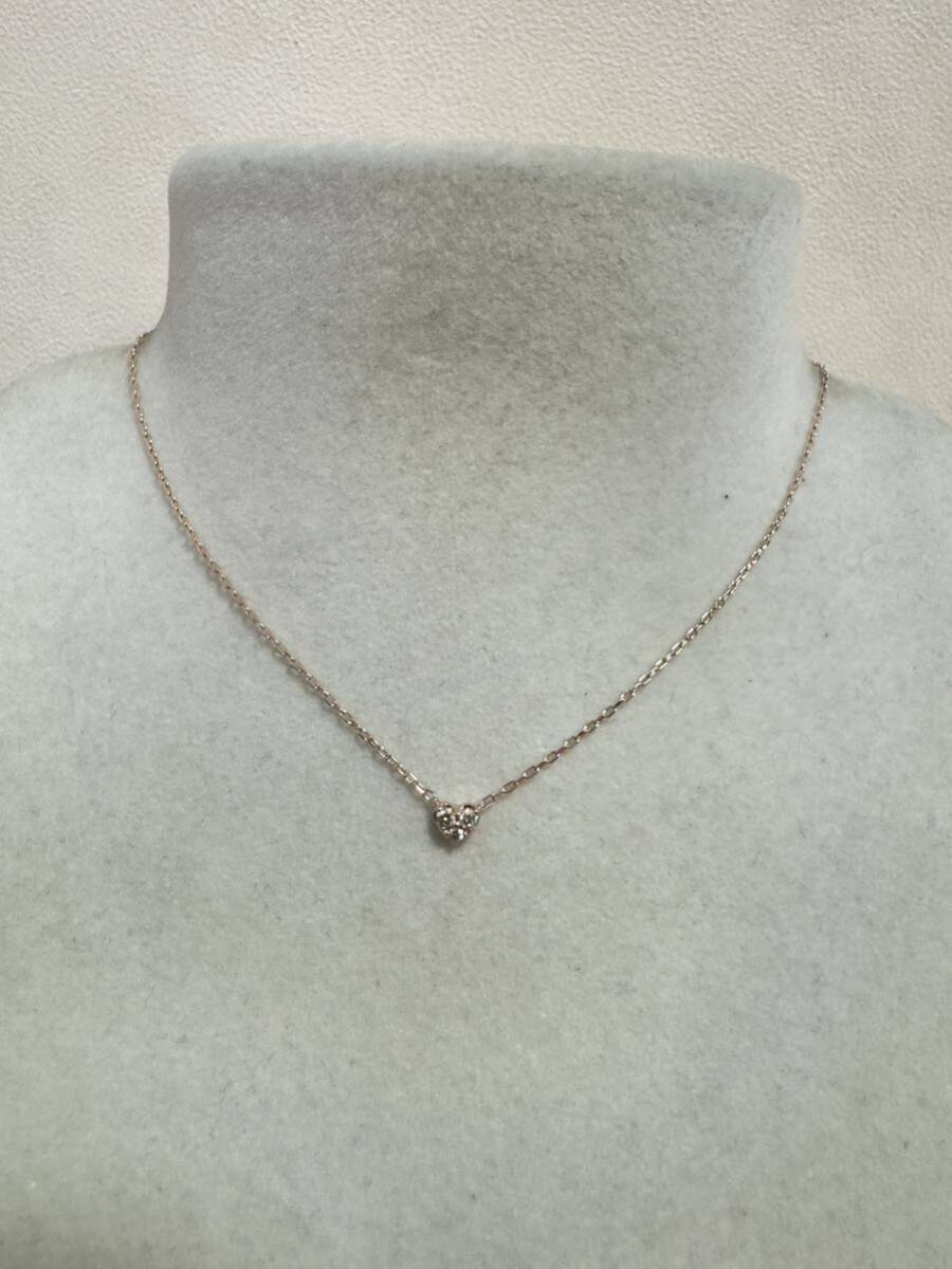 - 【質屋 尾張屋商店 東京】 ☆仕上済☆ K10PG ダイヤネックレス レディースアクセサリー ハート 40cm 0.08ct