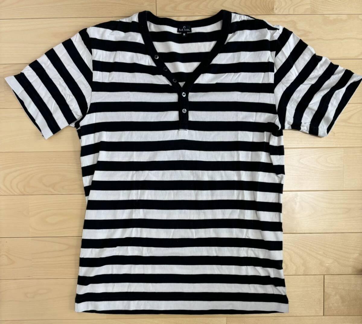 > ポールスミス Tシャツ メンズ M ヘンリーネック ボーダー ブラック ホワイト Paul Smith