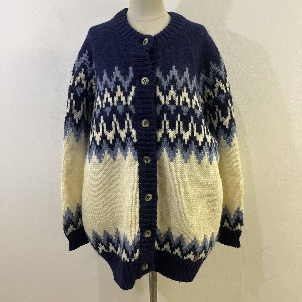 - VINTAGE RUNOX SCANDINAVIAN ニットカーディガン ニットブルゾン 総柄カーディガン ノルディック柄 ウールニット【送料一律/同梱可能】I