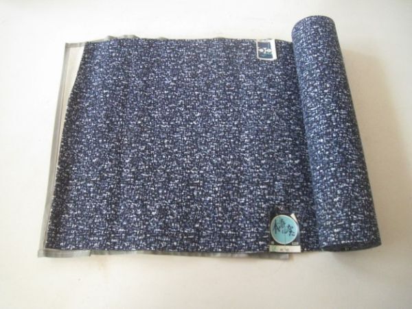 - 未使用品 ゆかた生地 反物 本染ゆかた 綿100% 巾35㎝ 全長:約12m ハンドメイド 素材 紺色/16N24.9-1