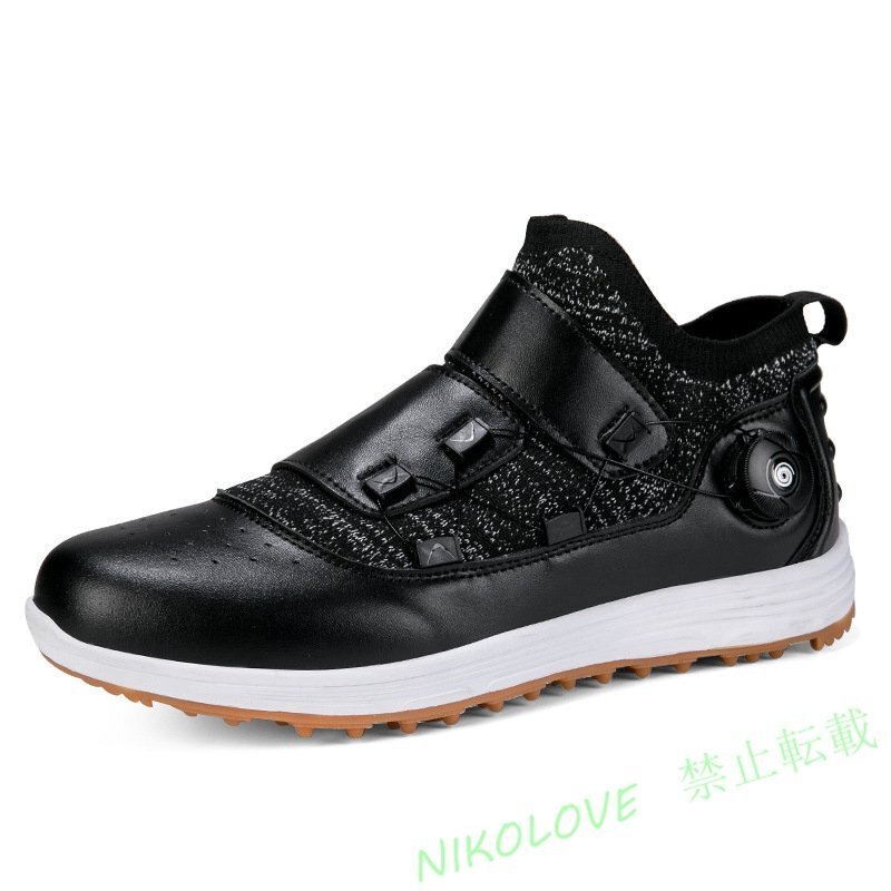- 新品 最高級 ゴルフシューズ 運動靴 メンズ 4E 幅広 スニーカー スポーツシューズ ダイヤル式 フィット感 防水性 耐久性 黒 LH408