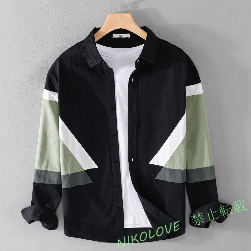 - 新品 メンズシャツ 長袖シャツ 切替 デザイナーズ 紳士服 ワークシャツ 綿 トップス お洒落 カジュアル スリム 二色選択可 LH340