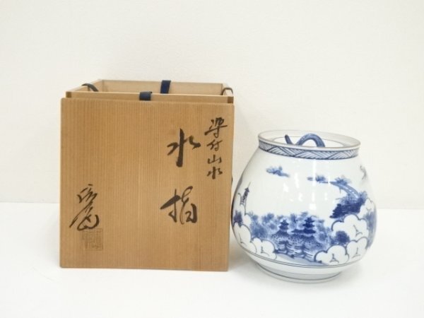 > ys7124970; 宗sou 京焼 押小路窯 庄左エ門造 染付山水水指(共箱)【道】