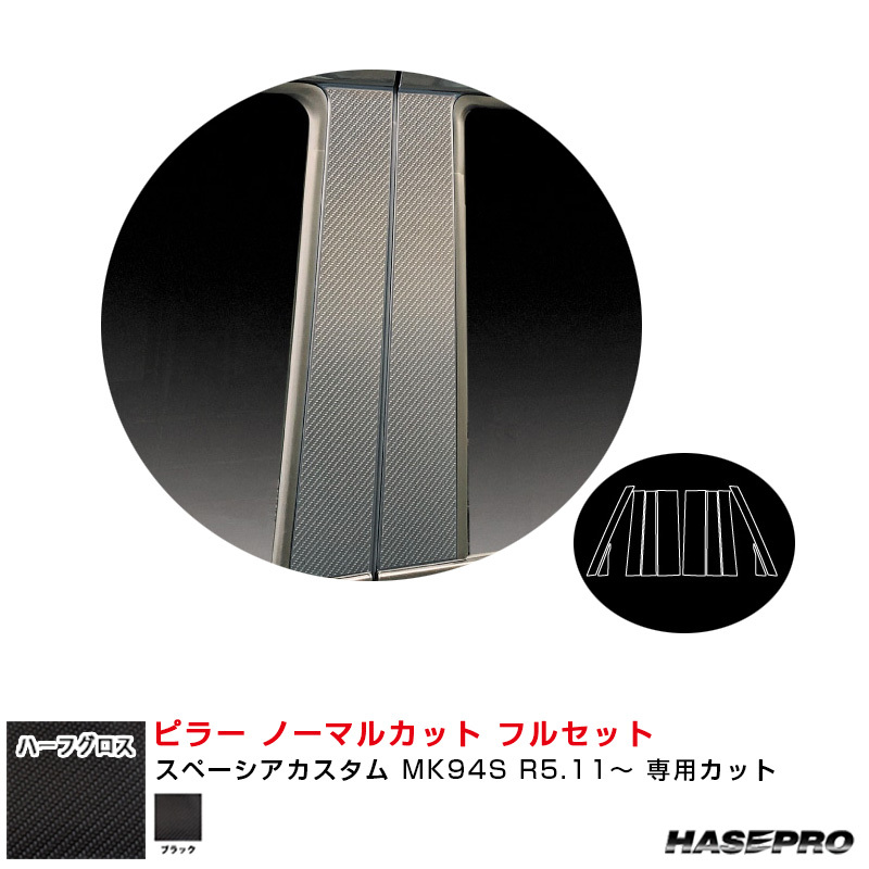 > ハーフグロス ピラー ノーマルカット フルセット スペーシアカスタム MK94S R5.11~ 【ブラック】 ハセプロ MSNHG-PSZ27F