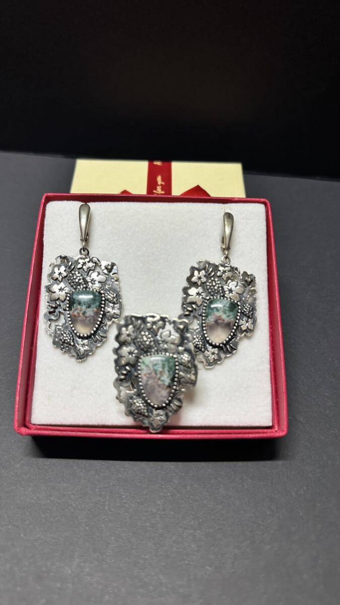 - 062 ハンドメイドジュエリー、イヤリング、リング セット。アルメニア。シルバー925(銀)