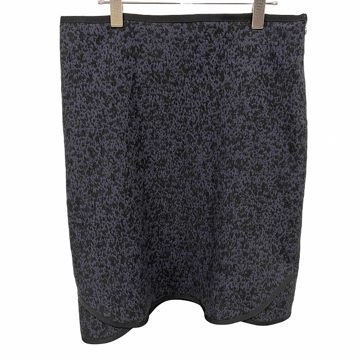 > 22 OCTOBRE スカート 大きいサイズ ひざ丈 総柄 ジャカード 裏地付き 綿×ポリエステル×ポリウレタン 46 ネイビー 紺×黒 レディース