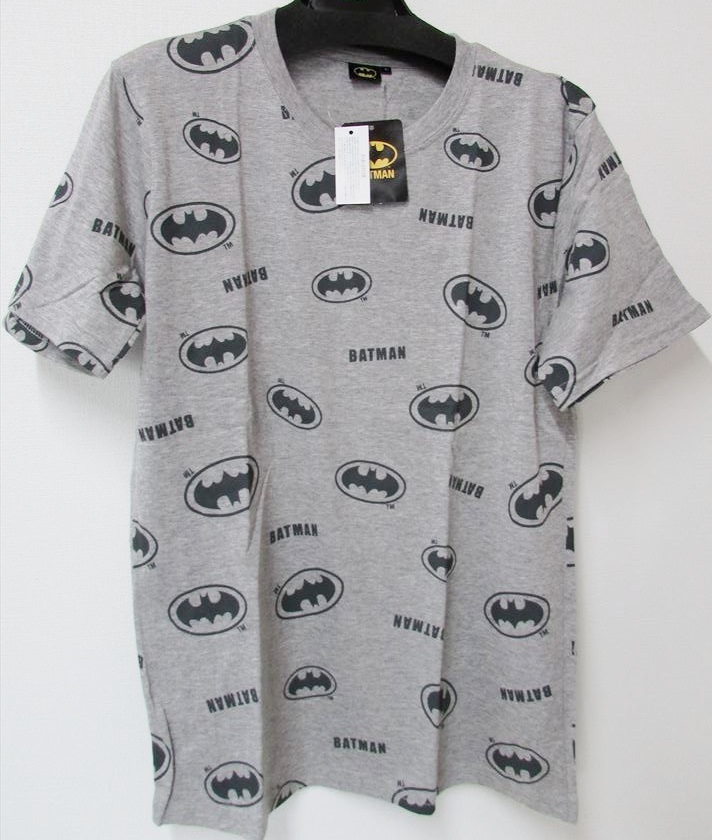> アウトレット BATMAN バットマン 半袖 Tシャツ ロゴT グレー×ダークグレー Lサイズ AC-016 アメコミ