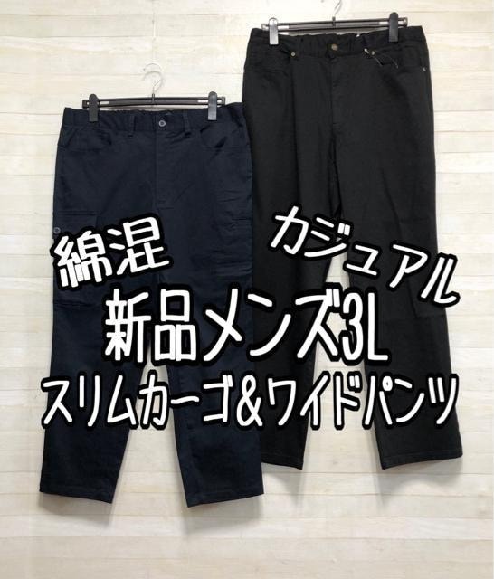 - 新品☆メンズ3L♪綿混カジュアルパンツ2本セット♪スリム&ワイド☆f902