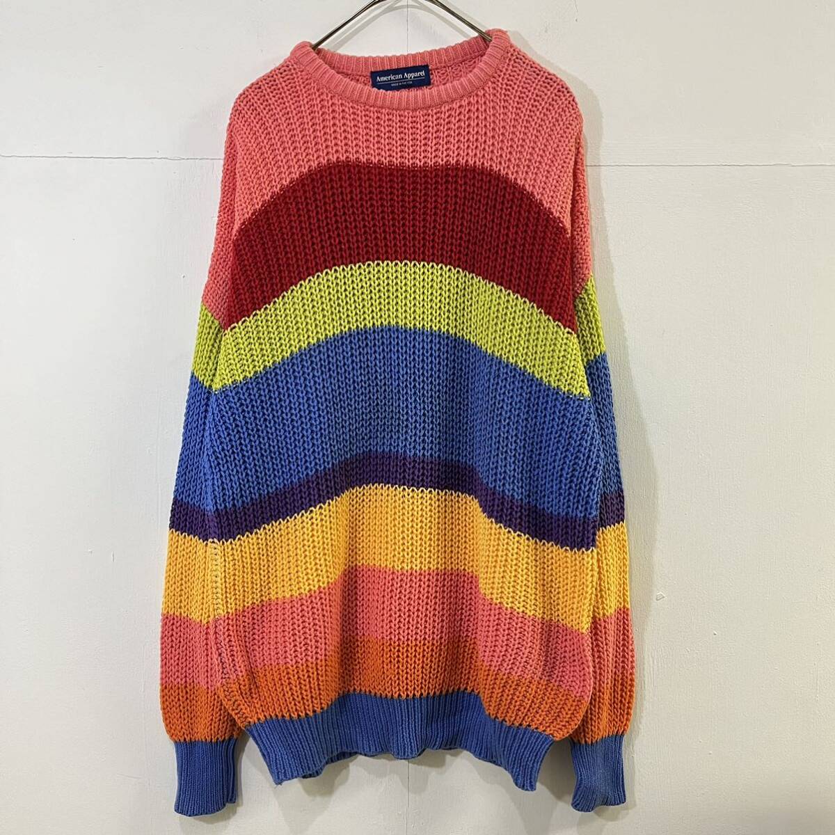 - American Apparel アメリカ製 USA製 コットンニット ニットセーター マルチカラー 総柄 ボーダー アメリカアパレル【送料一律/同梱可能】O