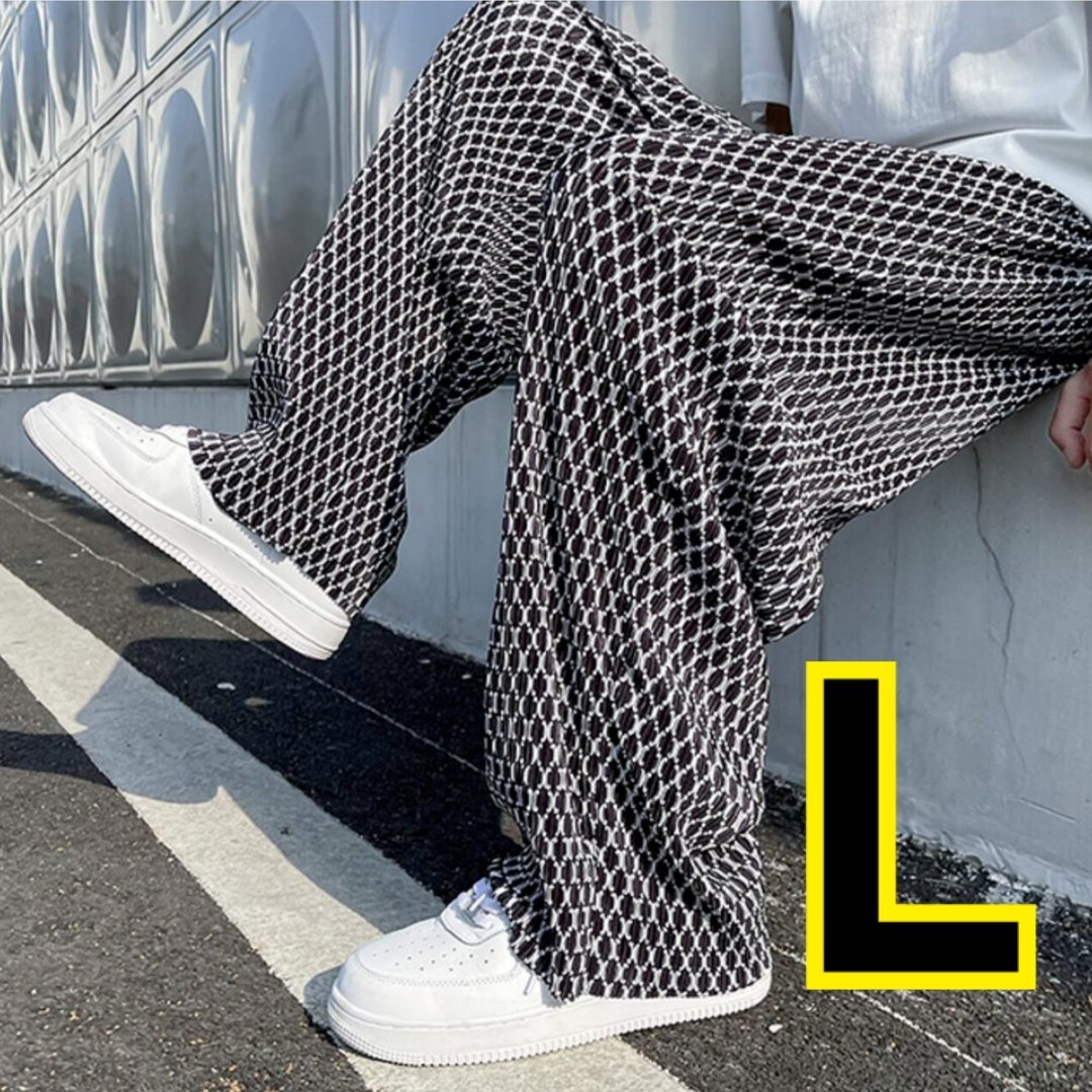 - ◆ワイド シルエット 総柄 パンツ ダンス 衣装 韓国 ストリート ゆったり ブラック メンズ