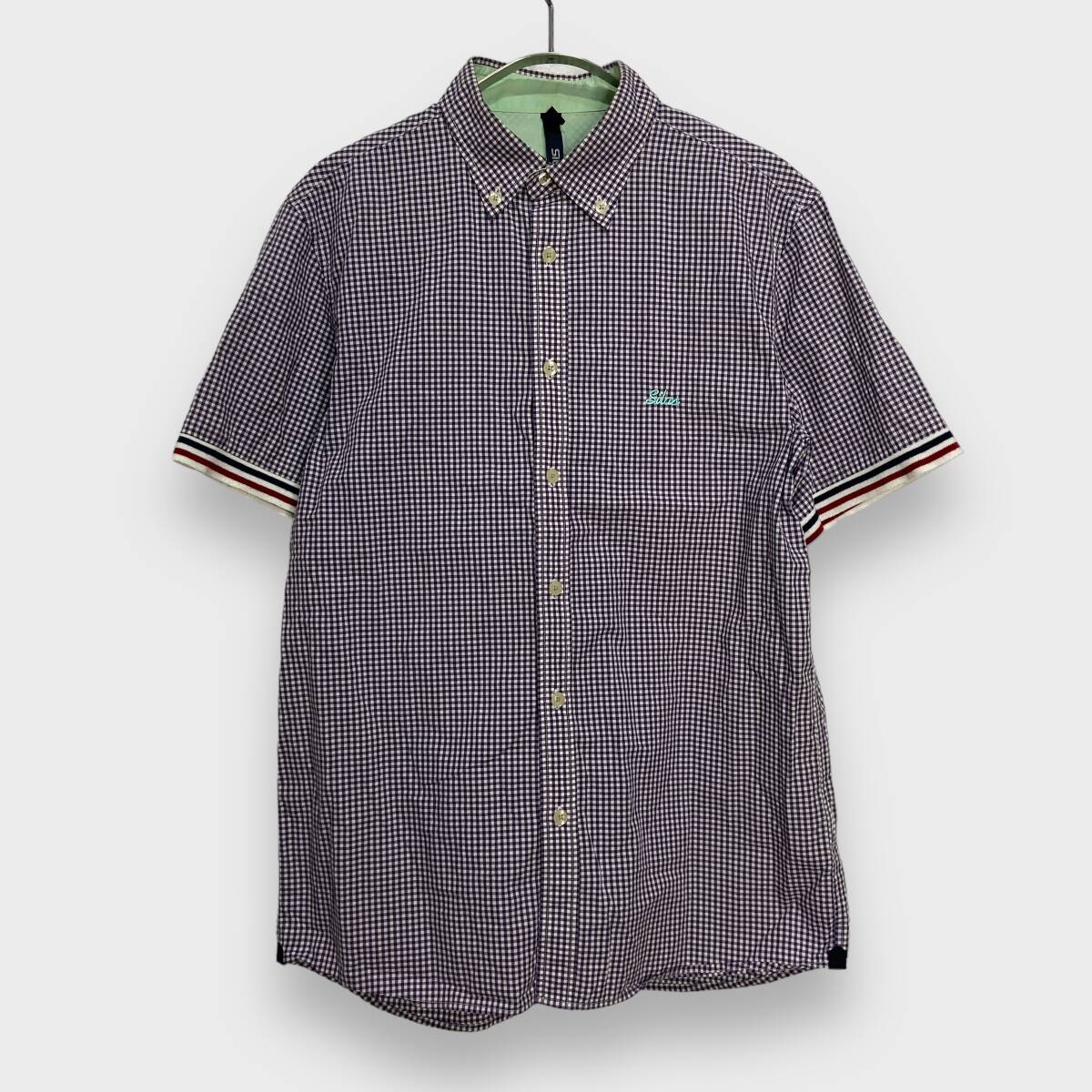 - 送料無料☆SILAS☆サイラス☆ギンガムチェック柄半袖シャツ☆リブ切り替え☆ワンポイントロゴ☆パープル☆サイズ2☆M相当☆I24M
